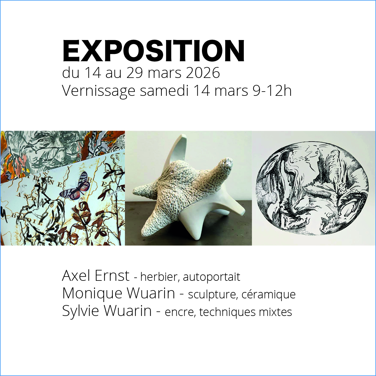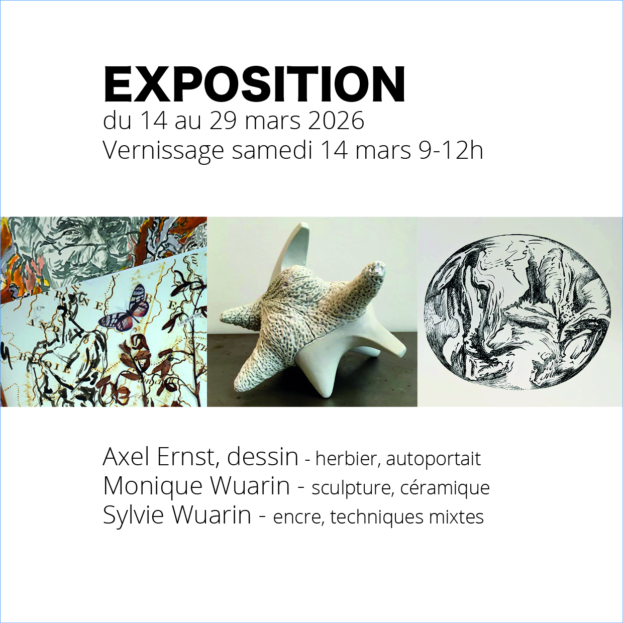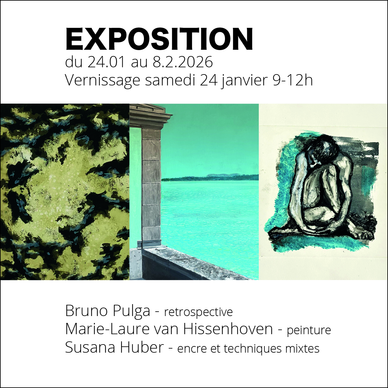 Exposition du 1er au 16 novembre 2025 – Vernissage « café croissant » samedi 1er novembre de 9 à 12h – Les frères Sizonenko , conversations entre peinture et photographie – Bernard Exquis, peinture à l’huile – Silvia Naudin, encre et aquarelle – Dimanche 2 novembre à 17h: « Doux Paradoxes » Chanson française, compositions de Carole Bruhin avec Le Duo du Collectif Touche Noire : Carole Bruhin et Marie Probst – Heures d’ouverture, en présence des artistes samedi et dimanche de 14h30 à 17h et mardi de 18 à 21h