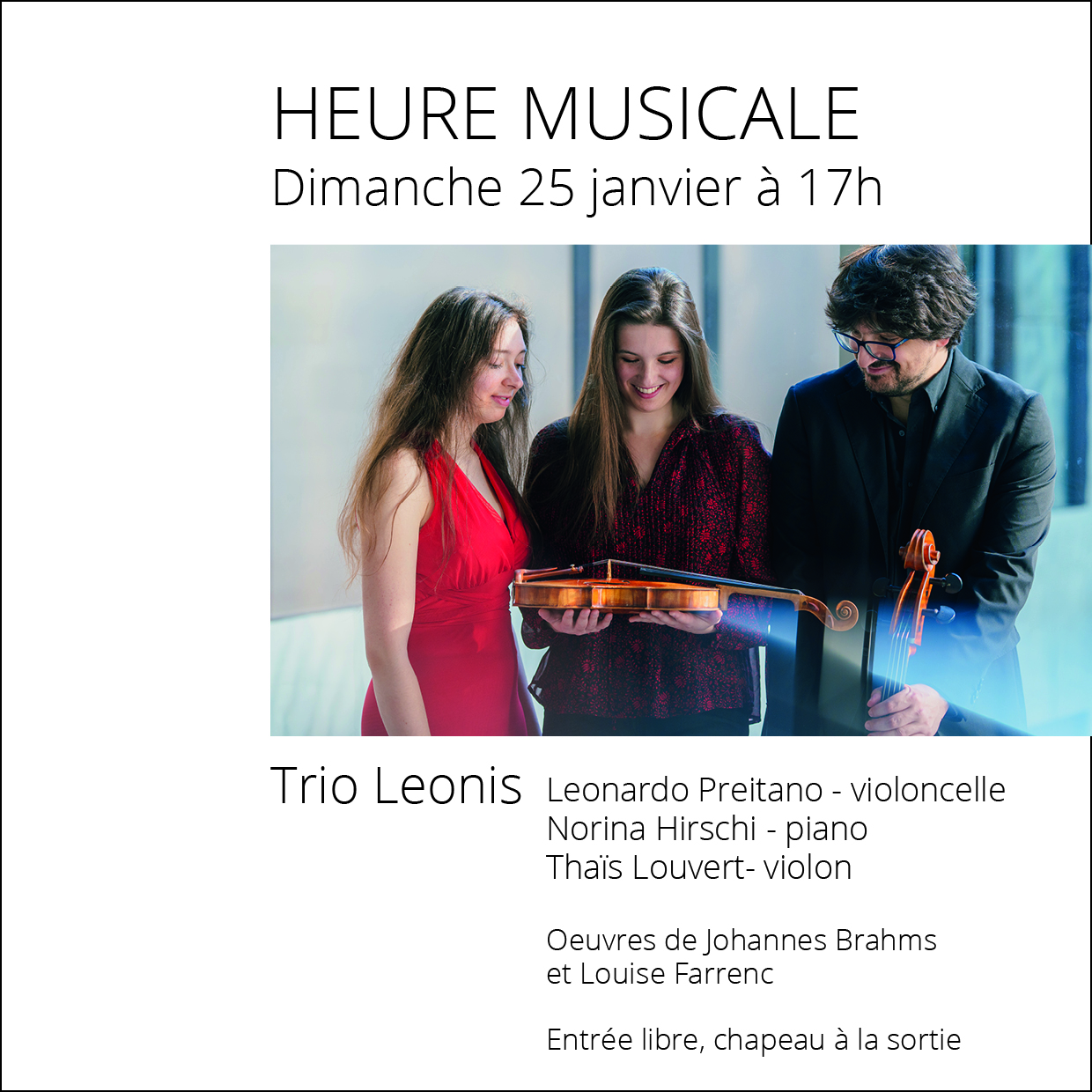 Dimanche 30 mars 2025 à 17h – Trio Kairos « De Bonn à Hambourg » – Loïc Vallaeys, piano – Emile Abeille, violon – Léonardo Capezzali, violoncelle – Oeuvres de Ludwig Van Beethoven et Johannes Brahms – Entrée libre et chapeau à la sortie